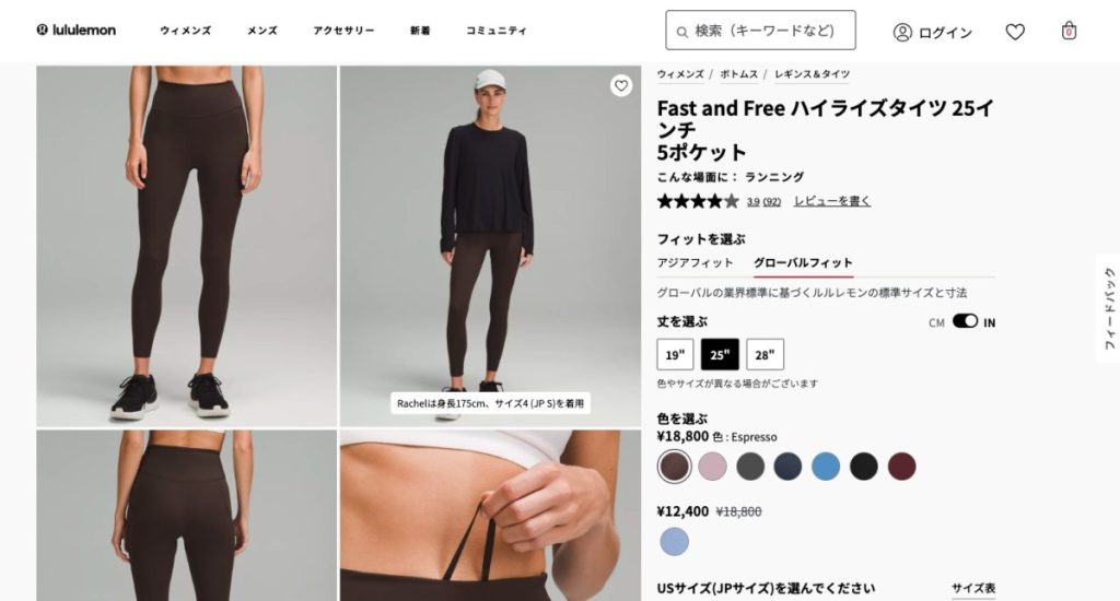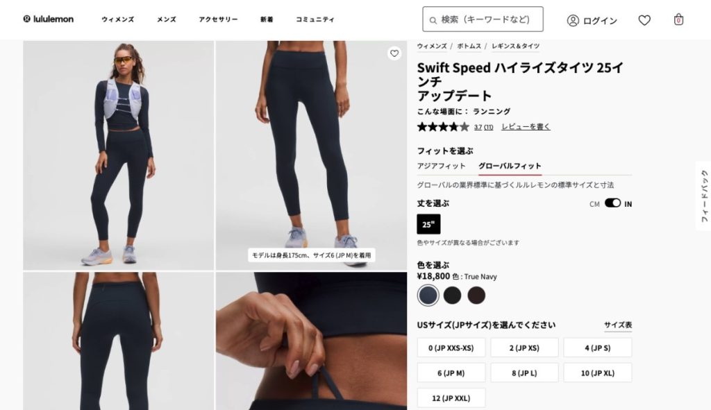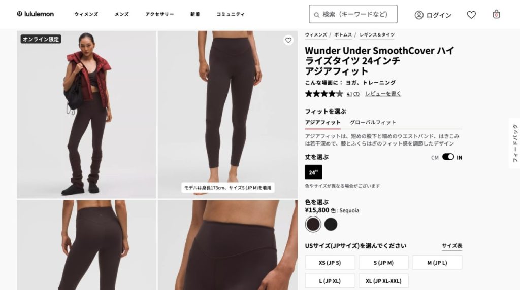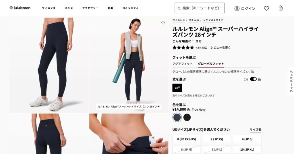 ルルレモンのレギンスは、サイズ選びがフィット感の命です。