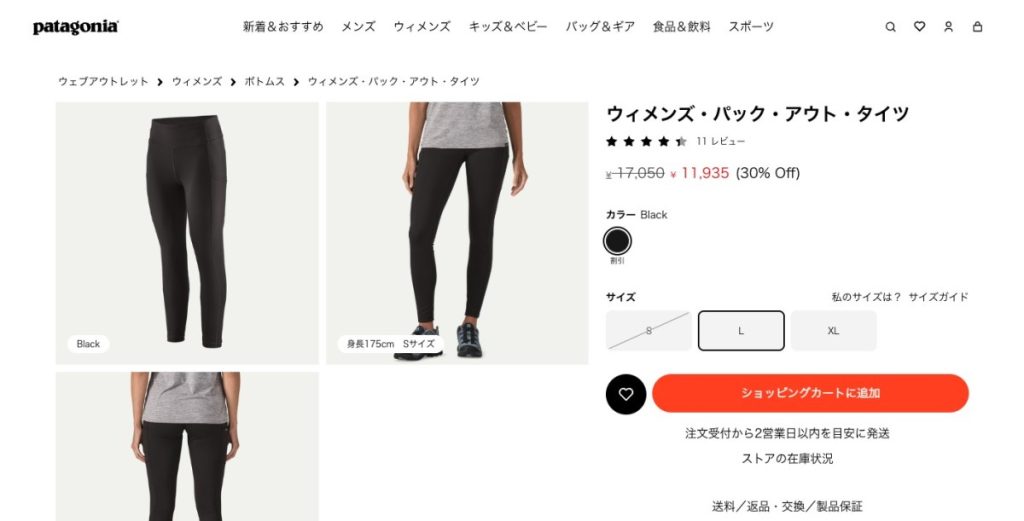 さらに、公式サイトには「ウェブアウトレット」という特設ページがあります。 過去のカラーやモデルが割引価格で販売されているため、パタゴニアのレギンスをお得に手に入れたい方は必見です。