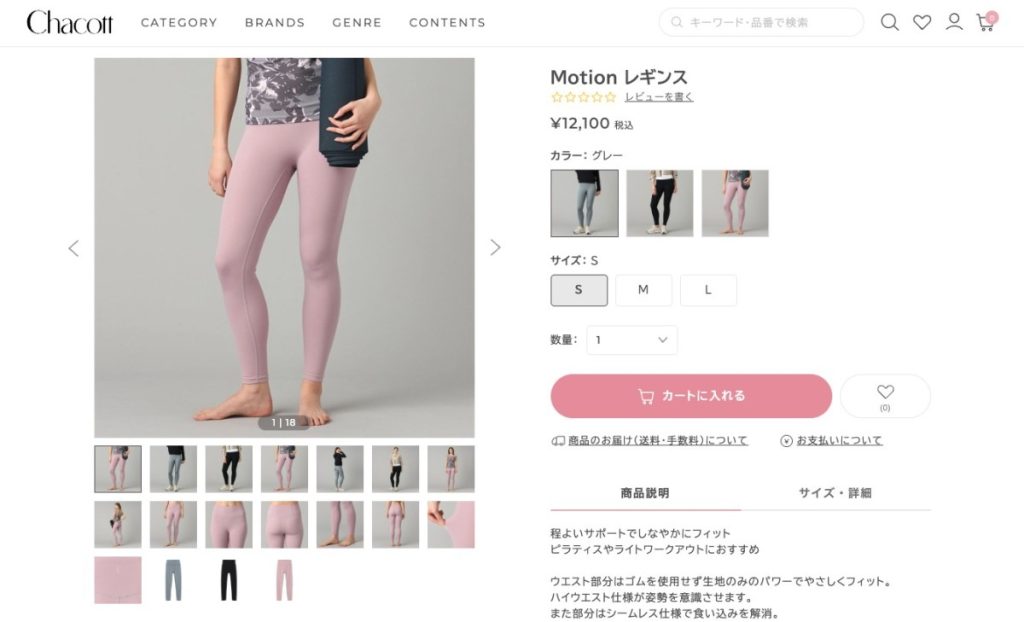 バレエ・ダンス用品の老舗であるチャコットのレギンスは、女性らしいしなやかなボディラインを演出してくれます。