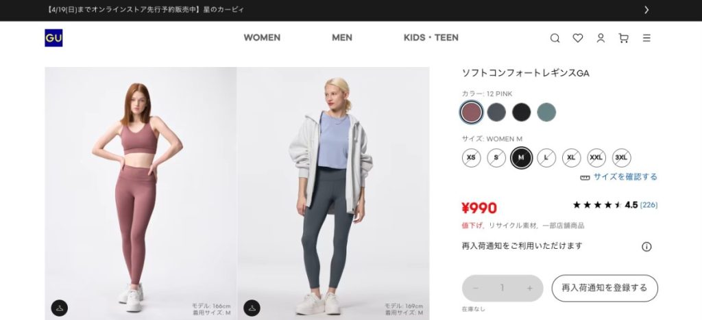とにかく安くウェアを揃えたいなら、GUのスポーツレギンスが最強の選択肢です。