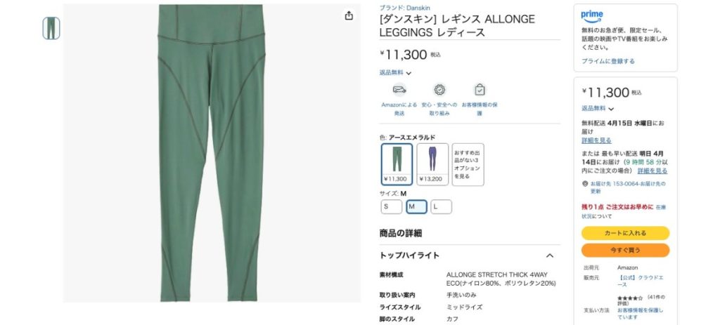 | ブランド・商品名 | DANSKIN(ダンスキン) / アロンジェレギンス |