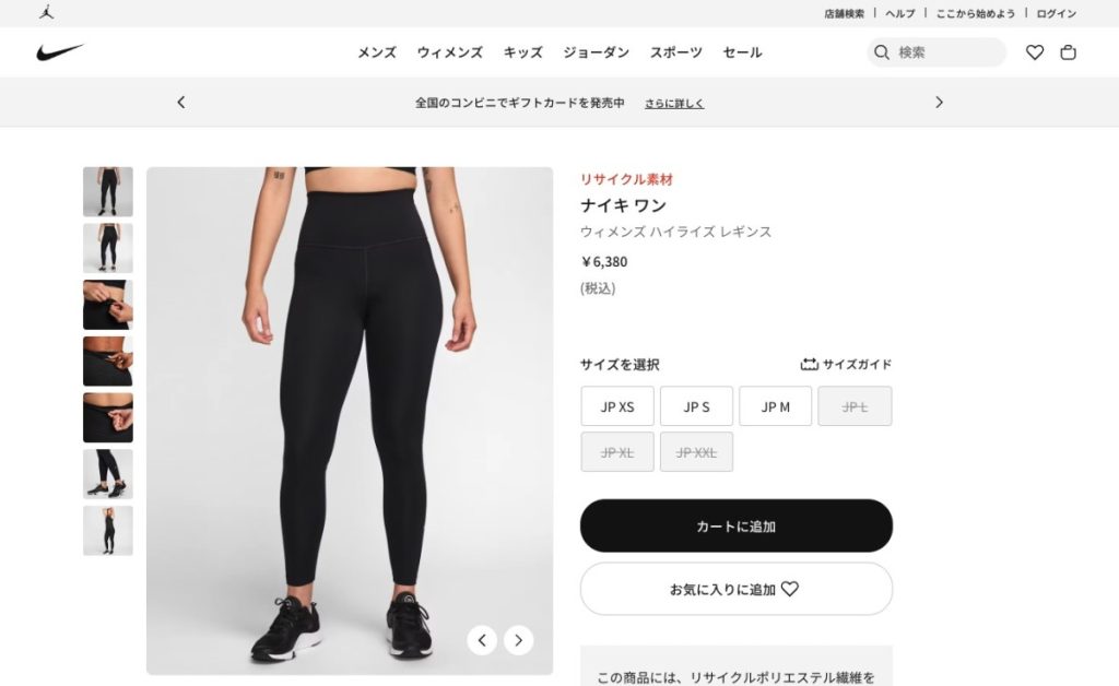 スポーツブランドの王道であるナイキのレギンスは、機能性とスポーティーなデザインを兼ね備えています。