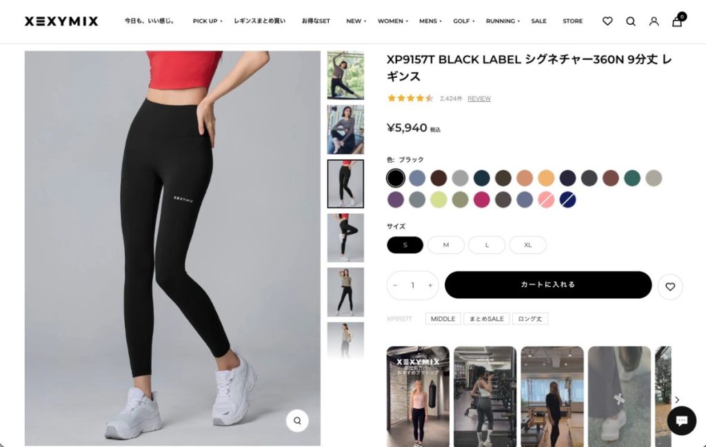 例えば、通常1枚5,000円台のレギンスが、2枚セットで買うと8,000円台に収まるケースが多くなります。